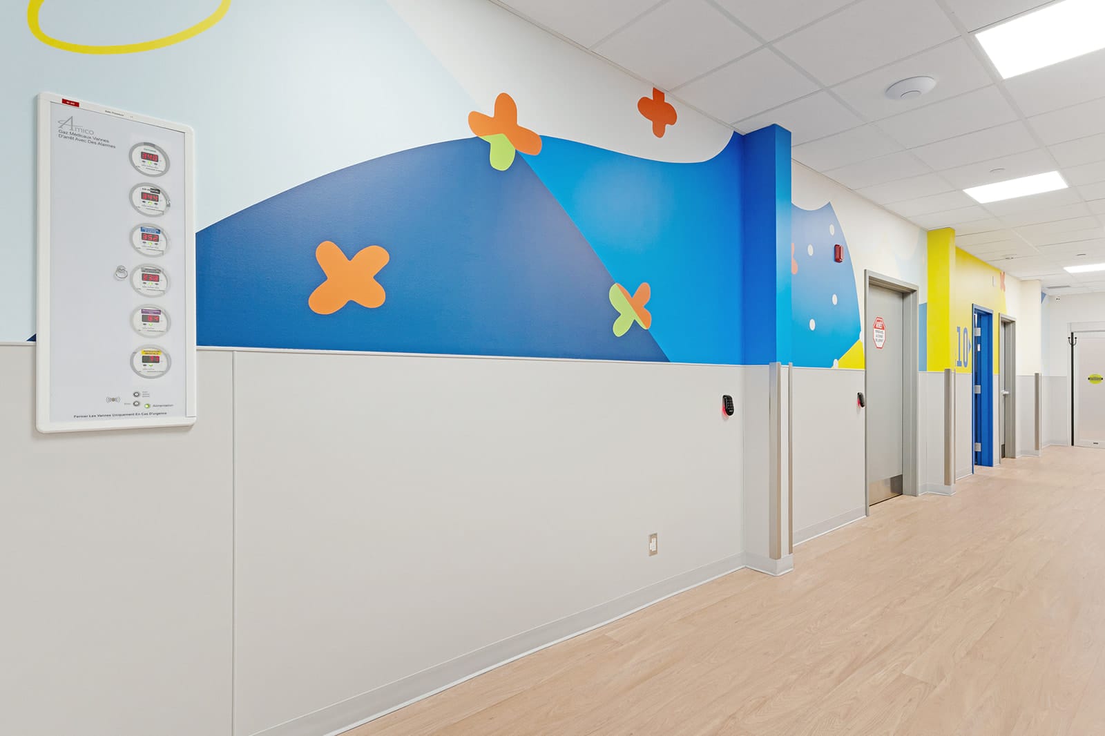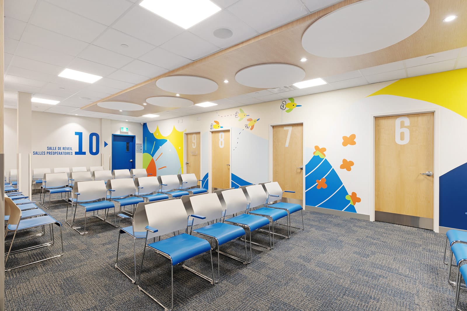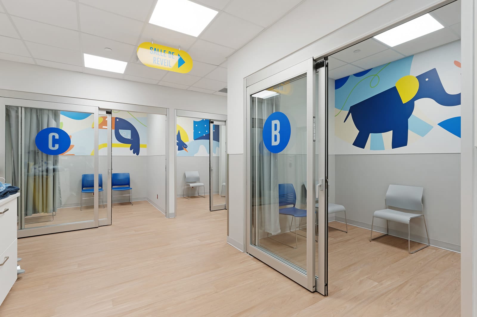 Après avoir choisi un style, une thématique et des couleurs pour les murales de la clinique d’anesthésie, nous avons demandé à Charlotte Arbez d’illustrer nos idées – mission réussie avec brio, au plus grand plaisir des clients !