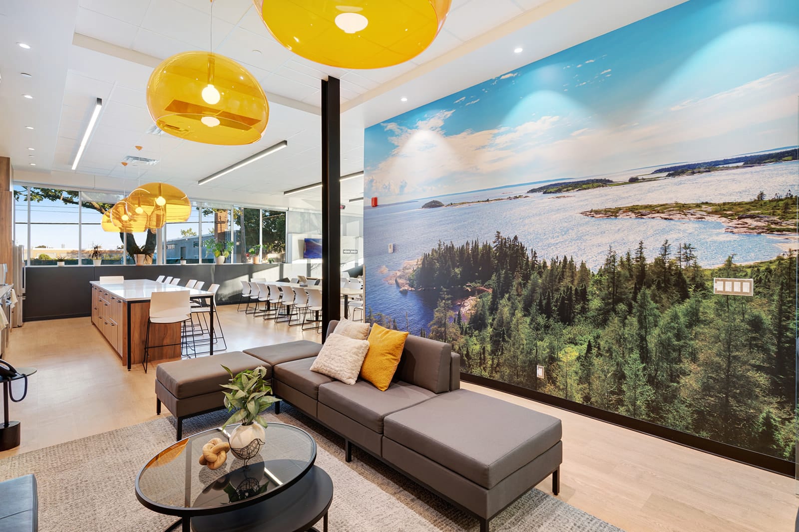 Un des points forts du design d’intérieur se situe dans l’intégration de murales dynamiques et colorées à l’image de nos murales Montréalaises qui apportent de la vie à nos espaces.