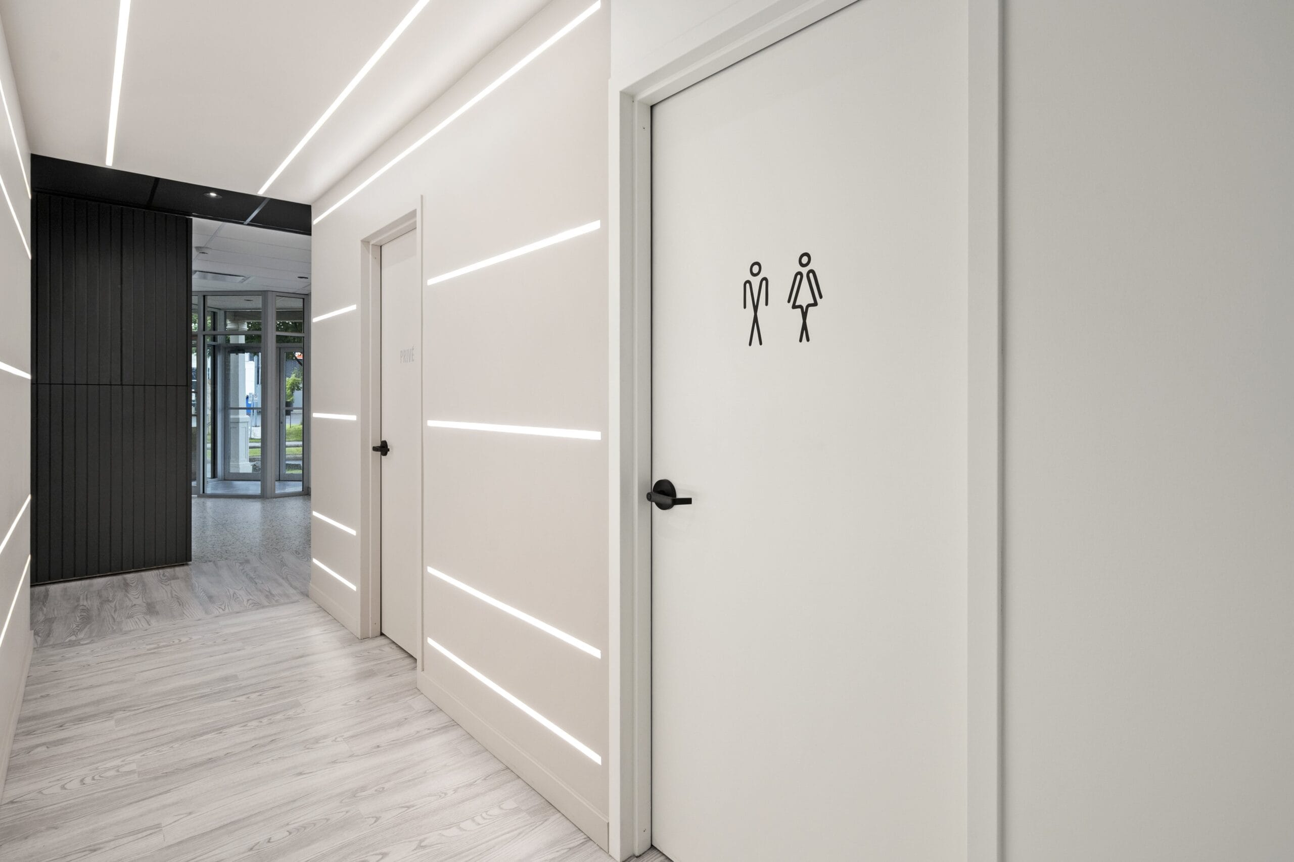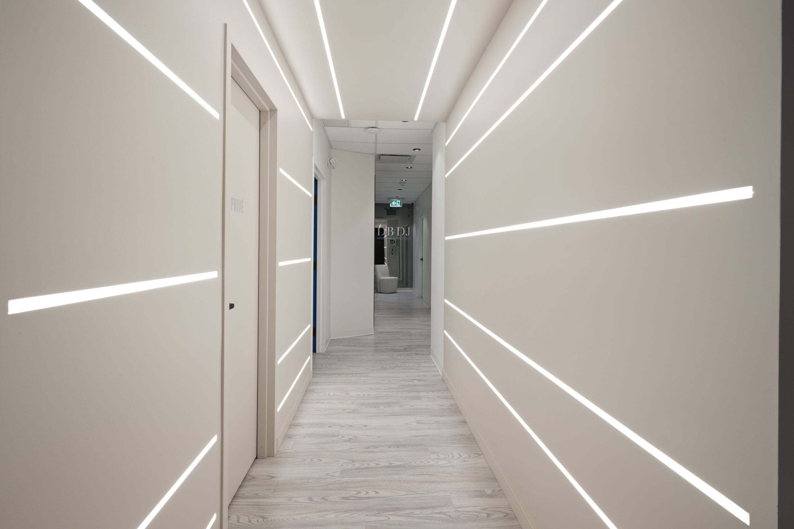 Au cœur du projet, le tunnel blanc joue un rôle clé dans l’expérience sensorielle de la clinique. Plus qu’un simple passage, il agit comme une véritable transition entre l’univers dentaire et celui de la médecine esthétique. Il crée une immersion totale, marquant un moment suspendu dans le parcours du patient.